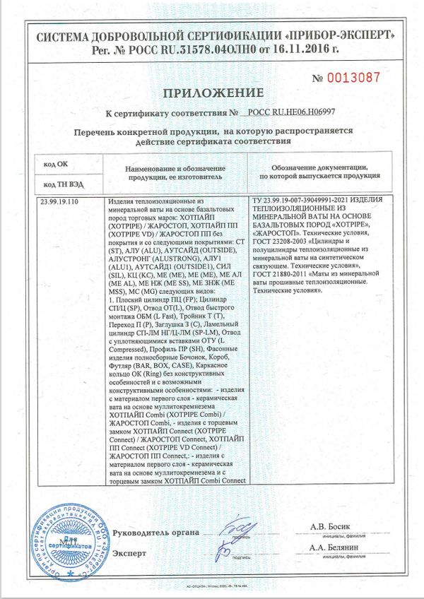 Используется для теплоизоляции охладительных установок острого пара свыше 350 °C. Для теплоизоляции клапанов и задвижек трубопроводов ТЭС, а так же для теплоизоляции печного оборудования.